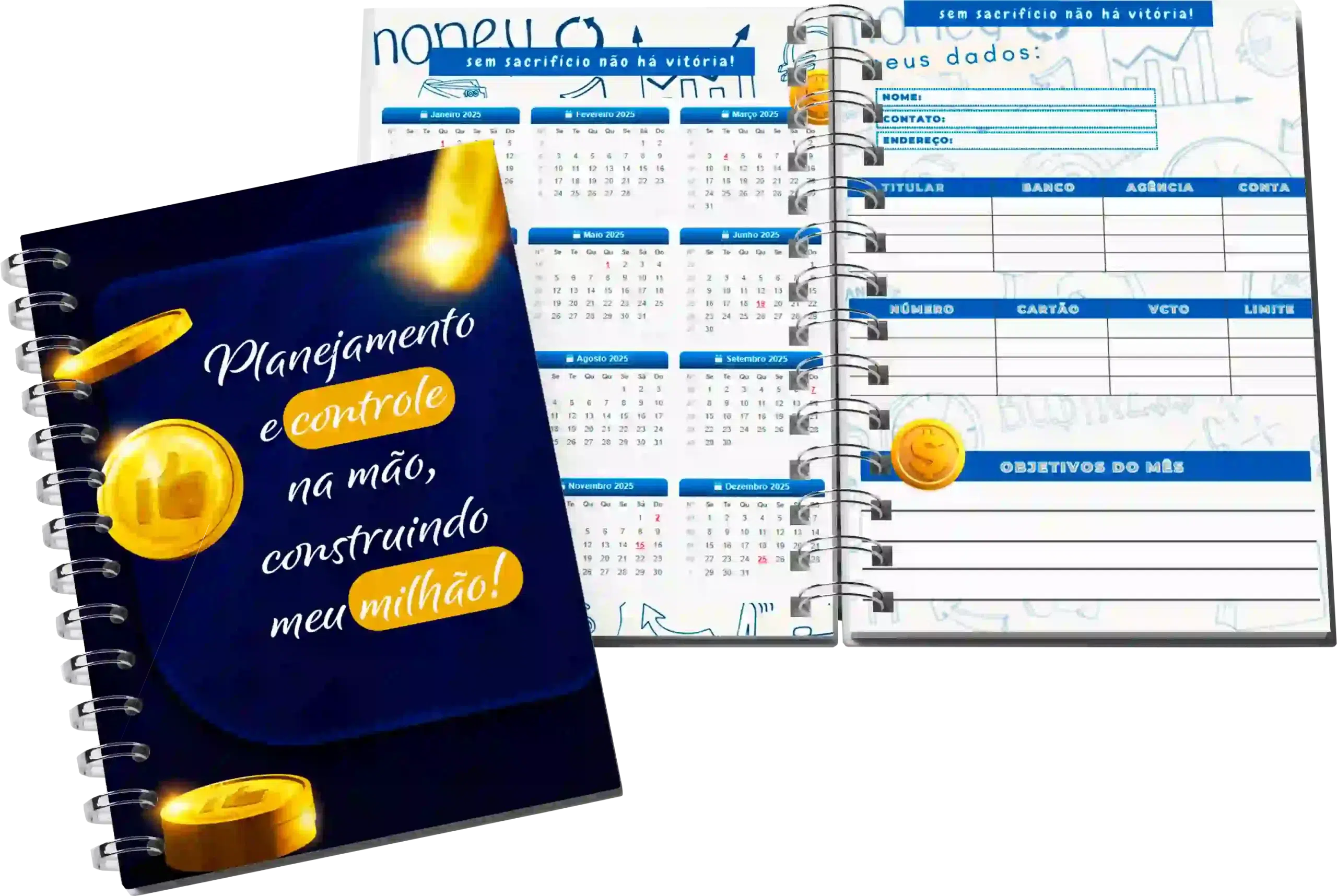 • Planner Controle Financeiro Premium: Controle suas finanças com praticidade! Organize contas, fluxo de caixa e atinja suas metas financeiras com clareza.