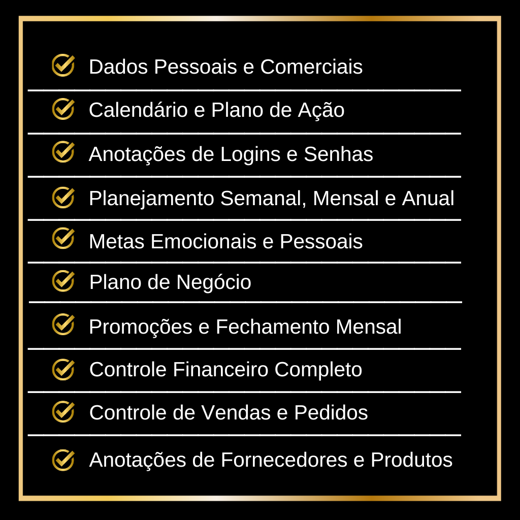 Esse planner é pensado para empreendedores que buscam não apenas organizar suas vidas, mas também potencializar seus negócios e alcançar resultados práticos e eficientes.